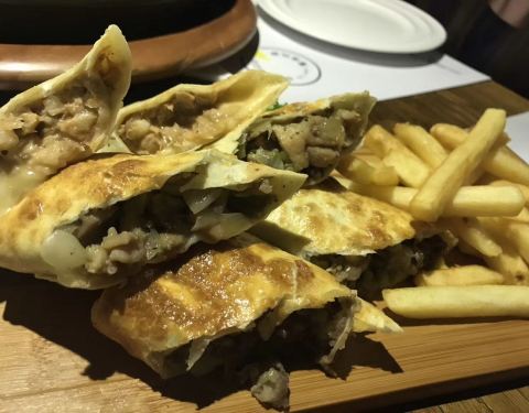 小吃的选择也不仅仅局限于炸的那些,芝士烤香肠很赞,浓浓的芝士香还配上了一些蔬菜!家门口最好吃的披萨店