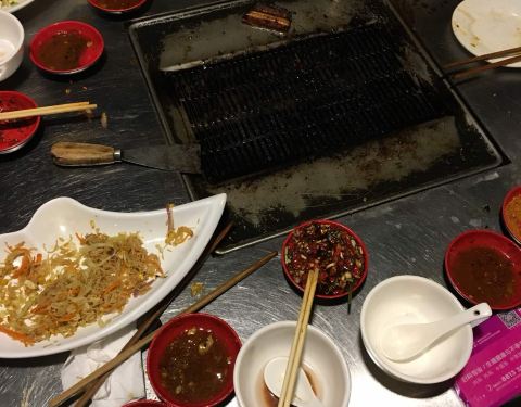 花园烧烤是贵阳的网红烧烤店, 开在小区居民楼下, 居然只有十张桌子, 可见排队是注定的了, 围着一圈都是等位的人 不知是不是心理作用, 总觉得炭火烤的好吃点, 可能就是喜欢那股烟火气吧~ 自己动手烤,比较好玩, 当然也对食材要求高点, 他家肉类挺多, 烤掌中宝好吃, 五花肉梅子肉都很不错。