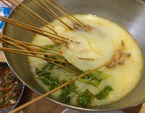付小姐在成都都是一个很特别的串吧,各种串串是在菜单上点的,而不是像一般的串儿店是自选,但是一次选不够的话可以补点,然后是在后厨加工好用,一大个铁波加汤端上来秘制的小料很好吃,就是有些辣,如果怕辣的话可以点油碟,各种肉的味道也不错。
