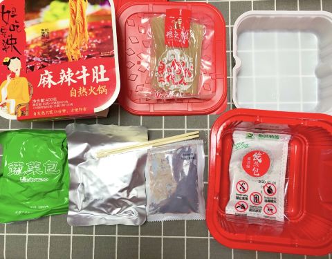特殊时期宅在家容易长肉肉,怎样吃才能又解馋又减脂呢? 推荐嗜辣如命的小伙伴一款好吃的自热锅,方便又好吃。付小姐在成都麻辣牛肚自热火锅,红色的盒子,拆开后里面有白色的盒子和各种食用包和自热包。自热火锅...