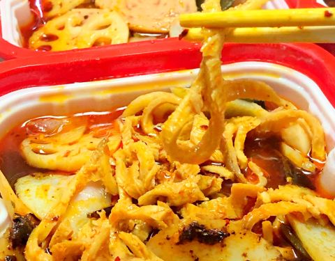 麻辣兔头,非常入味,很香。鸭血,蹄花很惊艳。小酥肉,外面裹得比较薄,外酥里嫩