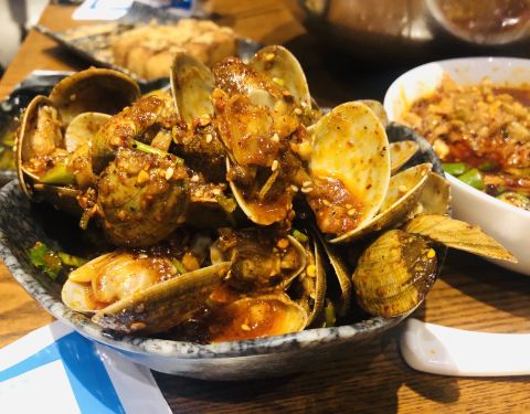 ...层肚」「冒鸭肠」「冒花甲」这几个是每次的必点菜,鸭肠很嫩,千层肚有嚼劲,花甲入味,都是非常好吃