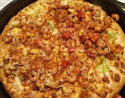 小龙虾披萨很不错!孩子也可以吃不是很辣