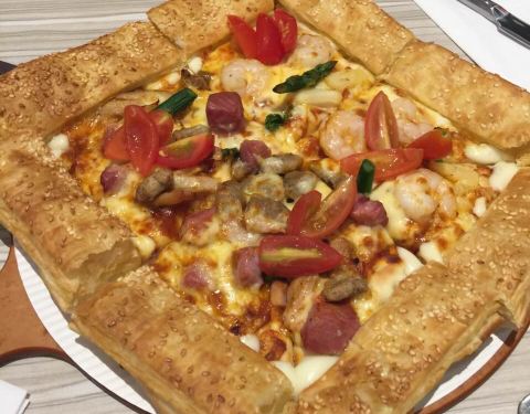 传统海鲜披萨是我的最爱,牛肉披萨也不错,整个面饼都的非常好,然后馅料很足,榴莲披萨榴莲味十足,...