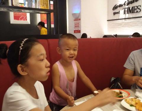 服务员特别周到,孩子哭的时候立刻拿小贴纸哄孩子,点赞。