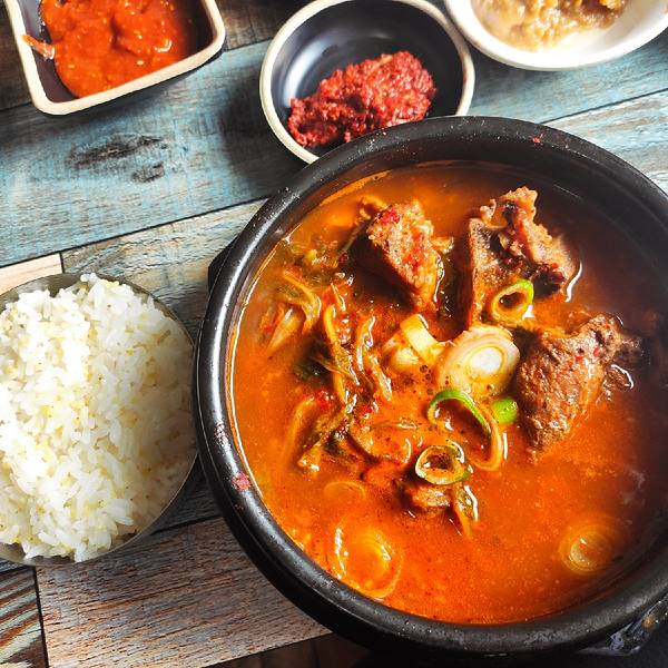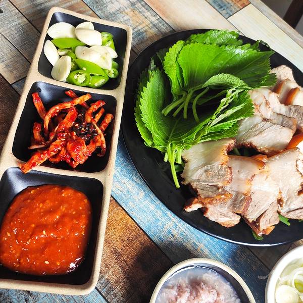 不错的一家粑粑馆,推荐。 朋友推荐来的一家韩餐馆子,就在翠竹小区居民区里边,也就是红梅市场对面那个院里,不要犹豫,进了大门往里走就是了,错不了。 真正的粑粑馆,连个像样的门脸都没有,在外边看到的是厨房,进门需要从楼道里进,这是我见过的最因地制宜的粑粑馆之一了。 里边应该是一家人在忙活,很有家庭气息,不管是做饭,还是吃饭的环境,都充满了生活气息,很温暖。 点了几道招牌菜,都还不错。 脊骨汤看着红通通的,但是并不辣,喝完了暖和和的,里边还有大块的脊骨,骨头上还有不少肉,配上一份米饭和几道小菜,很实惠,适合一人食。 米肠很正宗,配的蘸料味道非常赞,直接把米肠的味道提升到了一个新的层次,好吃。 菜包肉也好吃,但是吃多了会有点儿腻,和哪种酱都很搭,配菜的苏子叶和生菜,可以单独全部要一样菜,很人性化。 送的小菜很多,但是吃了这些以外基本上也没肚子吃小菜了,就肉眼所见,韭菜上的有点儿多了,并且就是生韭菜大概拌拌就上,反正我是没法下口,希望可以稍微精致一点儿,样式丰富一点儿。 总结就是,不挑环境,不喝酒的话,过来专门吃顿饭是个不错的选择。