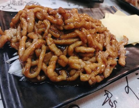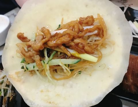 评价很好的一家小店,提前和老板订好了位子,酒香不怕巷子深。 从南锣鼓巷一直走,从沙井胡同进去,七绕八绕几个套间,很老式宅子,对于第一次去北京的我来说,很有感觉,就是电视里看到的那种。 老板和老板的爸爸都很热情,店内还有只可爱的串串腊肠,很乖就静静的趴在那里。 窗边放了一排饮料,很有老北京的韵味。 春饼,就是冲着这个来的,初一看就是比较大的烤鸭饼,但据说是不一样的做法,春饼干是烙的,做成了双层的,饼皮很有韧劲,很香,各种菜往里面加。 炒合菜,木耳、绿豆芽、韭菜炒在一起,单吃搁饼里都好吃。 酱肘子,好好吃的,肉很扎实紧致,肉皮QQ的,肥肉也都走油走掉了,蘸上甜面酱搁上黄瓜、大葱棒棒的。 京酱肉丝,可以用小块的豆腐皮包裹,也可以放春饼里,肉丝甜甜的,好吃。 疙瘩汤,来时冷到了,喝一碗热汤太舒服了。 酸辣土豆丝,脆脆的酸甜爽口。 饮料点了瓶装的北冰洋,上海很少看见,北方这边都喝这个。 很温馨的一家小店,东西实在又好吃。