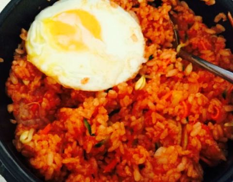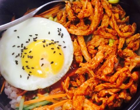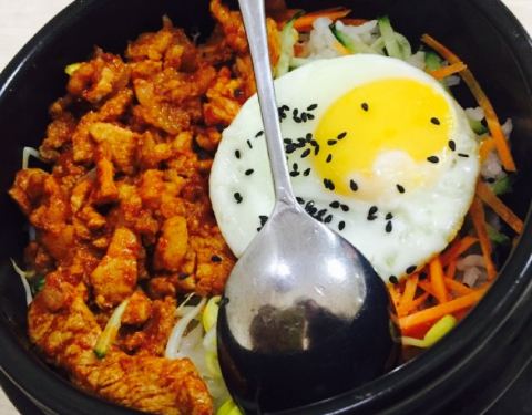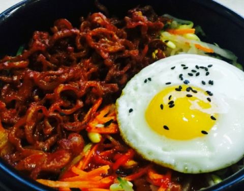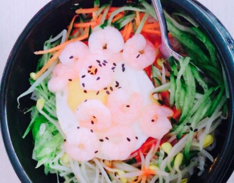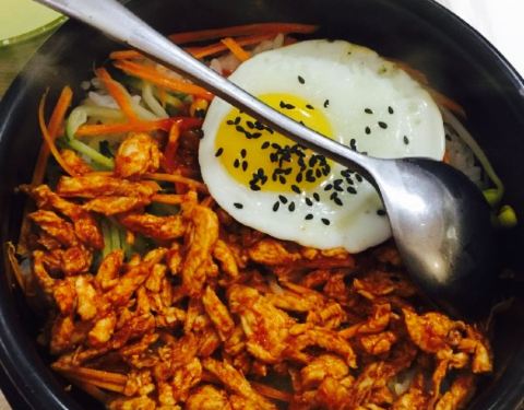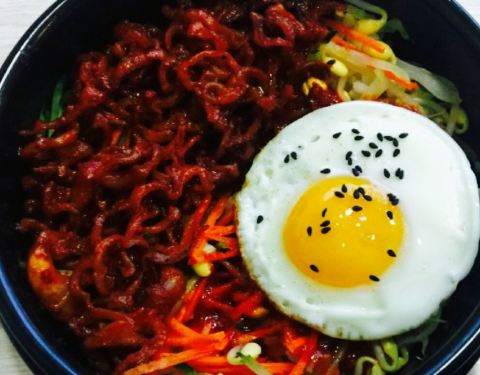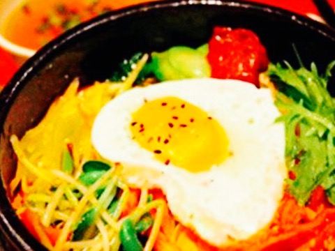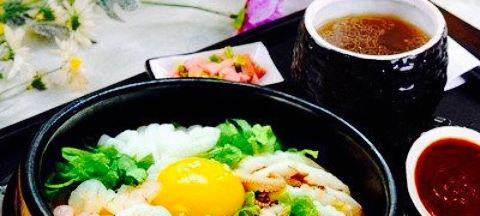 鸡蛋煎的太好看,上面还撒了许多的黑芝麻,石锅拌饭里有不少的猪肉条,大白菜,胡萝卜,豆芽,黄瓜,...
