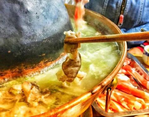 涮羊肉用的是正宗北京涮肉铜锅,内放炭火,蘸碟用的都是麻酱,没试过的一定要来试试
