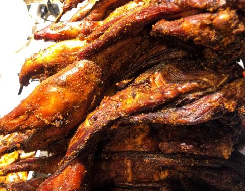 烤兔位置好找,在小吃街里面,重庆银行对面,可以直接吃也可以真空包装带走送人,真空包装袋收费一元一个。兔头、兔腿、兔肉丁、整只都有。
