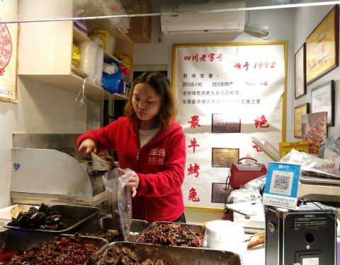 这是一家以经营兔肉食材为主的小吃店,各种口味的手撕兔肉,兔头都很受欢迎,五香的,麻辣的,重庆味道,这里的服务也很好,值得品尝。