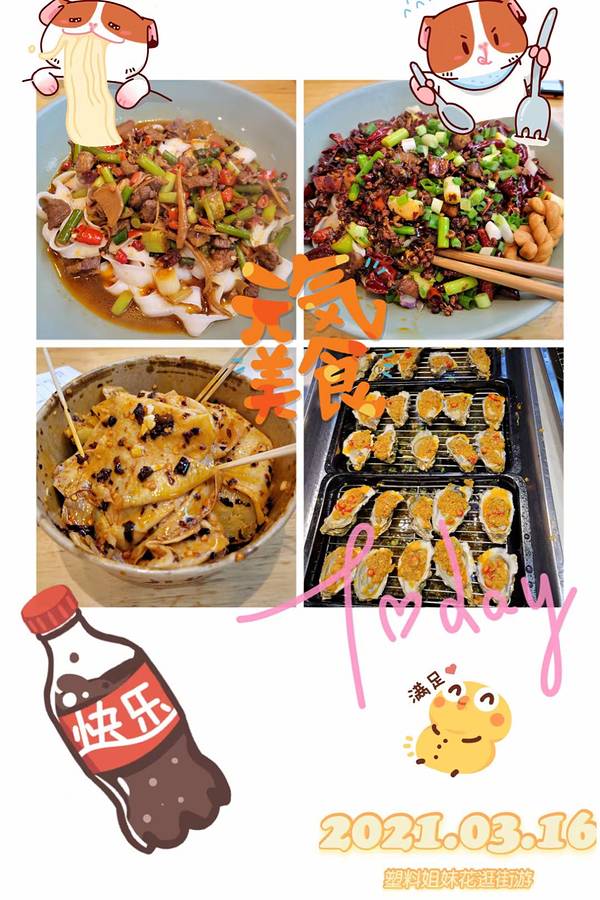每次去观音桥逛街必到好吃街,必须(生煎包、丁家坡土豆、韩式炒年糕、乳山生蚝)好多来不及拍照。满满的幸福感。很多人问这么多吃不完咋办啊,小伙伴的办法是:先吃一点—逛街—再来一些—再逛...这就是我们的逛...