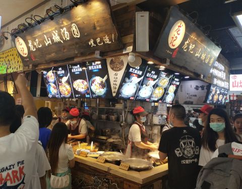 - ...国各地的美食,从无锡的灌汤包,到新疆的烤串,碳烤生蚝,爆爆蛋,而且味道都还挺不错的,各家都爆满