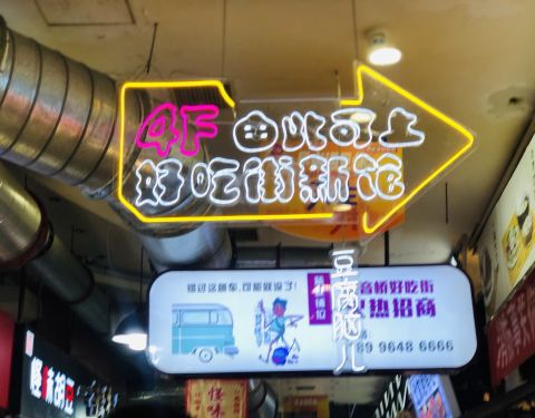 吃完两顿早餐,大家都很饱,所以很有默契的决定走路消食。 往观音桥步行街的方向,一直走,经过这个观音桥好吃街的时候,大家都被里面热热闹闹的气氛给吸引了。 虽然都不饿,也都吃不下,并且看起来好像也没啥特...吃完两顿早餐,大家都很饱,所以很有默契的决定走路消食。 往观音桥步行街的方向,一直走,经过这个观音桥好吃街的时候,大家都被里面热热闹闹的气氛给吸引了。 虽然都不饿,也都吃不下,并且看起来好像也没啥特别吸引人的小摊子,但就是很自觉的就停下来了,拿出手机和相机,拍照。 观音桥本身就很热闹,人流量大,而美食又最吸引人,所以这儿大概是最多人的一片区域吧。