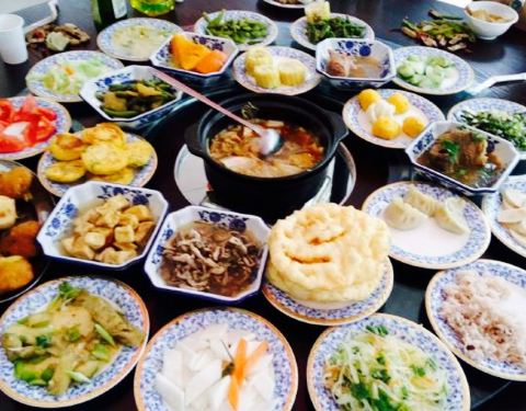 远道而来的,老爸一直想来吃,本来说好要去永宁古城的,嘿嘿。 。 。 。 。中午我们正好到达了柳沟,饭点,于于舟车劳顿,2位已经没精力走了,碰见一姑娘介绍他家豆腐宴不错就他家了,在路边停车场第一家,很近很近。 。 。 。姑娘说她们家3个人一共100元,5个人以上一个人30元,实在是好实惠啊。该补的豆腐宴会如此出名。 。 。 。桌子上你能见到的东西全都是30元里的,包括18个凉菜主食 。还有4个火锅,在这个倒春寒的日子里来一桌,真是爽到不行。 。 。主推小油饼,我一口气吃了6个,都是现炸出来的。太完美了。酥酥的。 。 。18个主食凉菜围绕这中间的主旋律,主食有麻团,粗粮团子,花卷饺子等,蒸南瓜,蒸玉米,豆制品豆泡,凉菜有四川泡菜,黄瓜 。海带,凉拌蒜肠,肉皮冻,之类,品种繁多,眼花缭乱,4个火锅周围分别放着6个菜取66大顺之意义,好吉祥。 。 。4个火锅里面分别是 。鱼肉 。牛肚 。豆腐汤,中间的火锅是挑大梁的 。有肉粉条白菜豆腐一锅汇,完美啊。有鲜又嫩。 。 。 。吃完了还想吃。到今天都挺想念的。 。 。店铺老板特实在又很舒心,补菜速度也很快。 。 。坐在小天井里来一场露天盛宴,或者选择包间安安静静的品尝豆腐宴,觉得太滋润啦。 。 。带着全家和朋友们来吧。性价比不是非常高。据说他们村子的价格都是一样的。