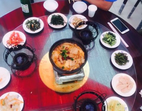 玩完玉渡山,专门去吃柳沟豆腐宴,原本在网友攻略查了一家,碰到有事情没开业。停车场有许多招揽生意的,我们就去了116号。环境,院子不大,有顶棚,挺卫生的。好像是4张桌子,余下的就是室内的桌子了。味道,凉菜味道很好,清爽的,毛肚很嫩,微辣,小朋友们也喜欢吃。炸油饼特别香,很脆,现在想起来还馋呢。服务,做饭的大姐特别热心,总怕我们吃不饱,走的时候还送到门口。总结,柳沟豆腐宴应该都大同小异,就是看哪家服务好了,冬天还要去吃,太超值了。