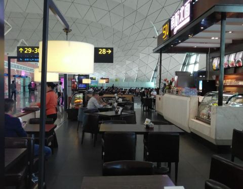 机场的餐饮,除了延误,永远都是贵的要死,把外面的价格加上三倍也就差不多了。除非马上要饿死,否则不建议购买。在28号边上,有点偏。