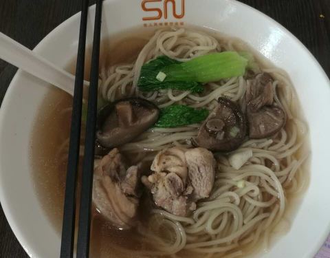 香菇面的汤味道很鲜,面比较劲道,机场里的东西比较贵一些。