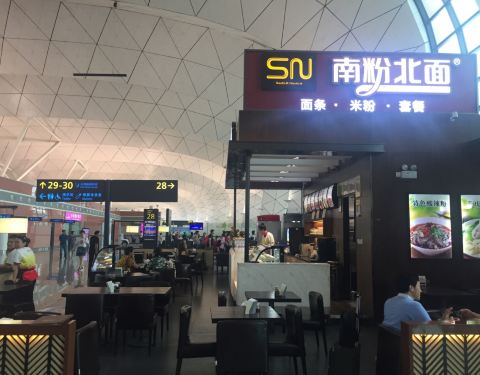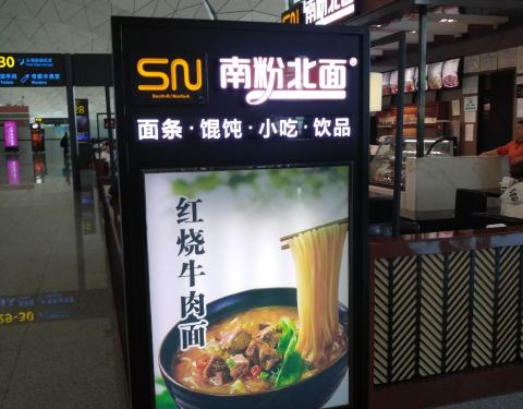 南粉北面机场店在桃仙机场T3航站楼一楼,在过安检区之后左手边走一百米左右就到了,除了面、粉之外,还有小馄饨等其他食品,忙碌的旅程里吃一碗热乎乎的面食最好了。