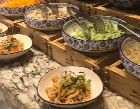 环境真心不错。圣和府邸酒店的设计就是神来之笔,自助餐厅在负一楼,和酒店格局丝丝入扣。自助餐种类不少,各个区域划分也很有特色,菜品口味不错,服务也很到位。有一点小不足,餐桌布局稍微宽松点可能更好!