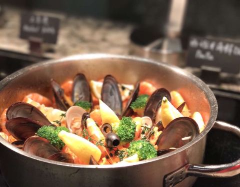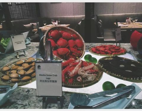 先说说交通,在长江路上,地铁和多路公交都可以到达。据说他家自助餐很有品质,慕名而来。 一眼就惊叹的海鲜档,来自海洋的气息,琳琅满目的海鲜,阿拉斯加蟹、梭子蟹、青口贝、扇贝、虾…个头大,当天新鲜,无限量! 虾蟹,个个壳薄体肥,肉质结实,甘甜Q弹;青口贝,颗粒肉质饱满有质感,口感甜嫩;花螺,肉质鲜美、酥脆爽口;蛏子,个体大、肉嫩而肥、色百味鲜。 新鲜的食材,简单的烹饪,恰到好处的保留了海鲜的原汁原味,口感清淡却不失鲜美,让您领略轻奢美味。 除了海鲜,各种口味的沙拉,日式刺身和寿司卷物接踵而至,鲜切的三文鱼、金枪鱼,北极贝..厚厚的一片,新潮加州卷、寿司卷..不断现做,带有饭的余温,加入多色配料佐食,调出专属于您的美妙滋味。 碳烤区大厨现场烤制,食材出品看得见的安全。牛排、鱼等等,自取自食,丝毫不限量。 另有经典的中式精选、精美冷盘,独具风味,惊喜无限! 各色现煮粉面等,透着热气,开放的全透明厨房,能闻出家中的饭香,让您在体验西餐特色的同时恋恋不忘中餐的传统美味。 除了以上美味,还有每日主厨明星菜派送。特色炒海鲜,蛏子,花蛤,无论辣炒,还是葱爆口味,无不吸引人驻足。 醒目的甜品天堂,自制的精致西点,唤醒了少女心,不单是自拍的必备,更是萌化味蕾的小幸运。 鲜榨的健康果蔬汁、现磨咖啡、常规饮料,更有澳大利亚进口红白葡萄酒畅饮,小心喝醉哦~ 总之非常满足的一餐。