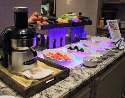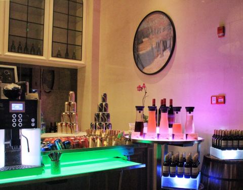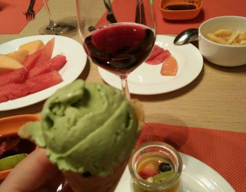 圣和府邸酒店负一楼,大门在总统府旁东箭道那条巷子,餐厅旁有个书吧,餐厅环境很好,人不多,还有个好大片区辟出来作儿童区,整体环境真的是称得上高大上。跟环境相比,服务质量只能算作一般吧,因为用餐人数较少,有些餐区服务员都不到位,找不到人。饮料没有鲜榨,只有罐装。总体菜品数量不多,唯一的好处是三文鱼无限量供应,不像有些地方会限量拿,比较麻烦。用餐最后会送一只小龙虾,但是口味做的并不是很好吃,海鲜也并不是很好吃。总体价格不菲,硬件还可以,菜品口味和服务都有待进一步提高。