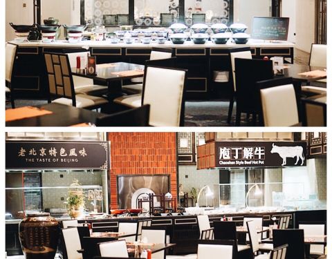 【交通】位于南京最繁华的1912街区附近,在长江路上,旁边有总统府新建的六朝博物馆和南京图书馆,都是地标性的建筑,到南京随便问一个人都知道。酒店就坐落在这里,时尚低调奢华,服务算是南京所有酒店中最好的,个人很喜欢的一家酒店。来到这里的人也许并没有华丽的外表,但都有腹有诗书气自华的气质。可以坐65路等在总统府下车,或者地铁2号线在大行宫下步行过来。 [ 环境和菜品 ] 环境上真是无可挑剔,除了他在负一楼,多少会觉得有些许压抑,和情不自禁就让你联想到的潮气,但是整体设计布局都是可圈可点的。 餐厅分为几个区域,室外也有一部分,还有专门的儿童游乐室,方便带儿童的住客。餐厅有西餐区,面条区,烧烤区,海鲜区,日料区,甜品区面包区等等。推荐西餐区,这边的厨师都还蛮帅的说,菜品卖相很好,口味也不错,牛肉羊肉都做的很软烂,很入味儿。冬天那时候过来还有每人两只螃蟹,还可以点他们这儿最推荐的瓦罐汤和银鳕鱼。服务员会及时过来帮你撤换盘子,有微笑服务,还是不错的。
