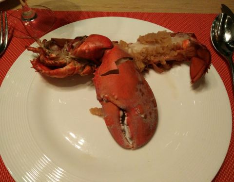 用餐最后会送一只小龙虾,但是口味做的并不是很好吃,海鲜也并不是很好吃。饮料没有鲜榨,只有罐装