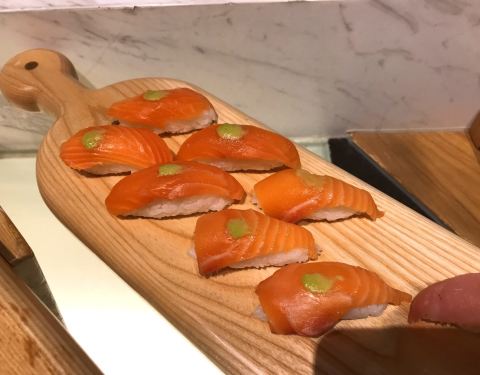 小朋友这周表现很不错,所以兑现承诺带他一起来吃自助餐,人不是很多,需提前一天预约,刚好我们来的这天有一家子开生日会,有点吵,应该平时挺清静的。 刺身:有三文鱼、金枪鱼和章鱼脚,三文鱼的新鲜度不是极...