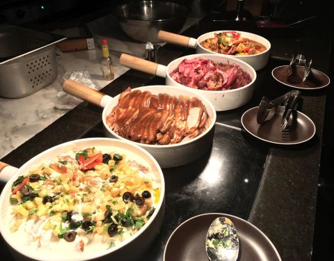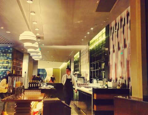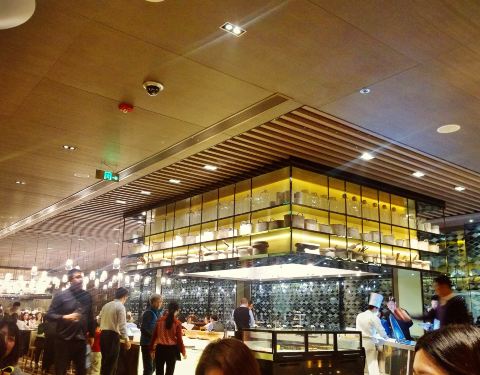 朋友说这家新开的酒店非常高大上,于是约了昨天过去共进早晚餐,果真很不错。 [ 环境 ] 酒店在奥体中心南门那边,我是公交去的,下了车就能看见酒店高高的名字,旁边还有环宇广场吧,也是个购物用餐的中心。走的越近越有震慑感!酒店超高的,大厅里面的吊灯富丽堂皇,很气派。燃餐厅就在一楼,很好找。现在来吃饭的基本都是提前很多天预定的他家生意爆好啊!门口有展示柜,里面很宽敞,大气,L型的布局,合理利用了空间。但是觉得中间的座椅私密性不是特别大。座椅很舒服。灯光明暗度适中。 [ 菜品 ] [ 冰淇淋 ] 最喜欢的先说!他家的冰淇淋简直太好吃了!据说是瑞士的一个品牌,装在一个圆盘里,一直转动,有十二种口味,我只品尝了两种。有意大利巧克力碎的还有卡布奇诺的,奶油味儿很浓郁,还有碎巧克力让口感丰富了很多。这个没有限制的,可以无限量取用。感觉跟哈根达斯不相上下。 [ 甜品 ] 他家的甜品也是亮点。提拉米苏和抹茶巧克力蛋糕都被打扮成草原的样子,上面再点缀些黄色小花,很有意思。还有巧克力喷泉,各种派,甜而不腻,高水准。 [ 海鲜 ] 他家海鲜有扇贝和阿拉斯加蟹腿,虾子,感觉食材都很新鲜,肉质饱满,再配上各种酱汁,赞。 [ 日料 ] 以三文鱼为主,都是厨师现切的肉很厚实,还有金枪鱼和各种寿司。 [ 烧烤 ] 他家的烧烤档是我吃过最好的!有超级大烤鱿鱼,烤的火候特别到位,还有秋刀鱼和羊肉串,非常香!秋刀鱼不会苦,好吃到cry [ 其他 ] 另外他家还有西餐档,中餐档,面点档,北京烤鸭,面包,水果档等等,品质均属上乘! [ 服务 ] 他家的服务也是这么多酒店里非常主动有效的!刚进酒店大门就会有人领路,餐厅有带位服务,会及时收餐盘,如有需要反应迅速,马上帮我们拿来湿毛巾。 总得来说,是性价比很高的自助餐厅,适合情侣家庭朋友公司聚会!