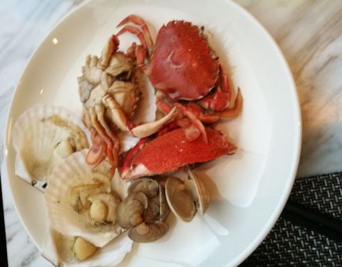 烤牛肉:肉质非常不错! 蟹脚:小朋友很喜欢吃,说肉质很好。自己按喜好来切