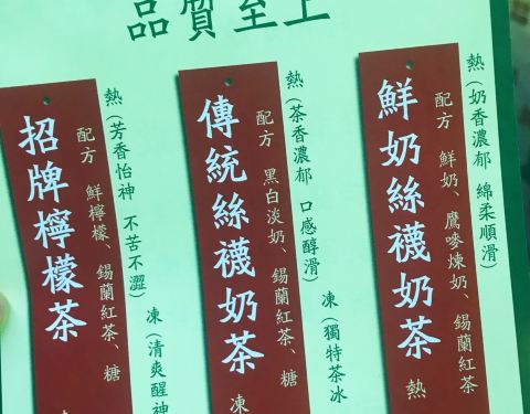 朋友推荐的一家奶茶店 喝过之后才知道原来早已声名在外 只有柠檬茶,传统丝袜奶茶,和鲜奶丝袜奶茶三款奶茶。价格差不多,在这个地标还算合理。 购买前店员会询问是否是第一次喝,根据需求调整口味。 选了传统丝...
