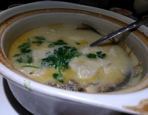 听说是用各种各样的杂鱼把汤汁熬成奶白色,再放入油煸过的黄鱼把汤炖煮至金黄后,放肉糜小馄饨。最后加入香菜和胡椒吊鲜。我都数不清喝了多少碗,鲜美到什么赞美的语言都显得匮乏!推荐!
