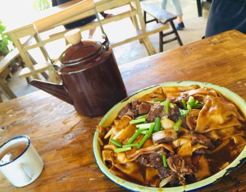 白天还是非常热闹的,我们选择的是一家非常有名,口碑也很好,做焖饼的饭馆,口味确实相当不错,牛肉...
