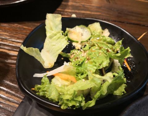 朋友家附近的烤肉店,已经说了好几次终于来试了下,店面不大分楼上楼下两层,这家店打扫很干净不会很油,主要是炭火烤肉,温度火候会比较好,自己可以烤也可以麻烦店员帮忙烤,点了招牌的上等牛小排,厚薄适中所以烤起来也不会长时间也不容易焦,关键是味道很好,非常嫩而且一点也不油腻;鸡翅比较难烤时间有点长容易焦,而且味道没有腌制进去,所以还是更喜欢吃牛肉;大酱汤微微辣也很鲜,还有蛤蜊、西葫芦、豆腐、内容也很丰富,还不错吧;还是烤牛肉好吃,推荐!