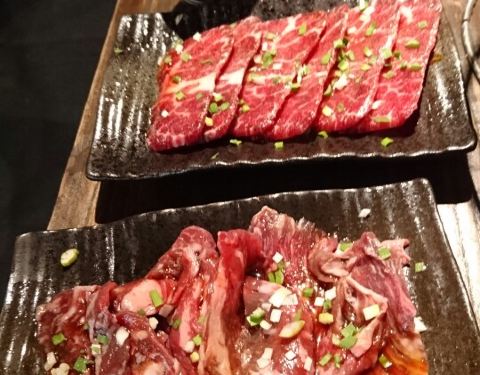 牛肉类较多,我们点了4盘牛肉和一盘五花肉,五花肉是烤完给你上的,比较方便