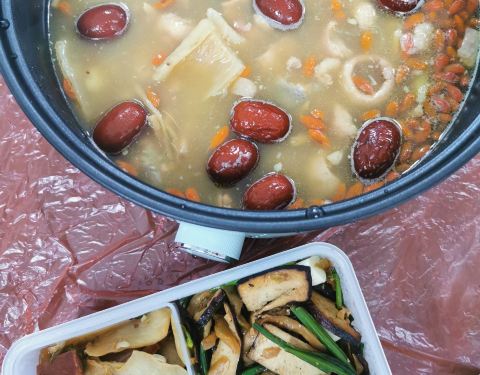 捞菜排骨太好吃了,分量足,味道好!我们四个人点五个菜还有三个菜打包!