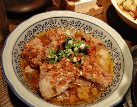 - 菜品略有点咸,风味还不错。 这个菜馆挺有特色的,看菜点菜。臭豆腐很好吃,外焦内嫩的