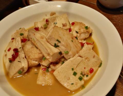 菜品略有点咸,风味还不错。 这个菜馆挺有特色的,看菜点菜。臭豆腐很好吃,外焦内嫩的