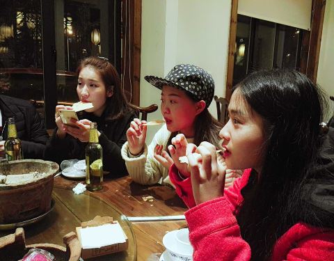 今天来的晚,从江西特地赶回爷爷家吃饭,几个想吃的菜卖完了。味道还是很好,小伙伴第一次点薄脆,吃得很开心,没吃上豆腐有点遗憾。发点小伙伴的美女照。