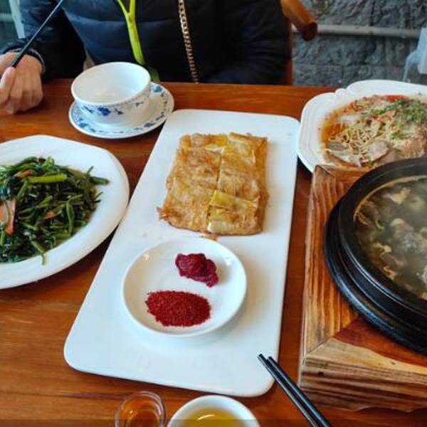 据说有百年历史的古建筑,内部的大院子非常美,所以吃饭的时候最好是选择靠窗的位置,秘制招牌豆腐,外脆里嫩,石锅牛肉好吃,汤很鲜美入味,牛肉挑的是带筋的肉,很有嚼劲,还让店家加了汤嘻嘻