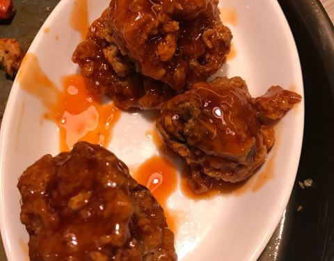 大宝贝儿特别喜欢吃披萨,虾球非常好吃,榴莲披萨发的特别好,特别是上边大大的榴莲块好吃极了