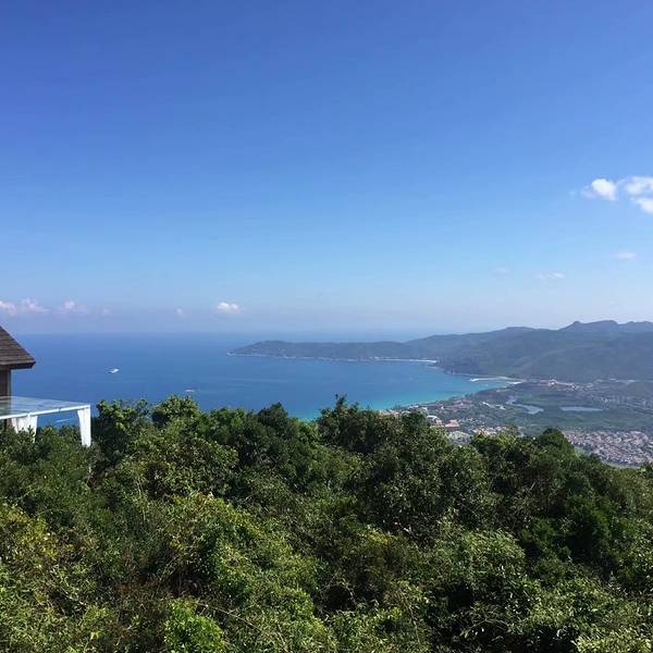 海边也玩了,实在是不知道去哪里玩了,然后酒店的小姐姐说附近就有一个森林公园 挨着酒店很近,说可以去看看!然后我们就来了天气一如既往的炎热,我已经没有任何形象了~一出门汗水就已经吧衣服打湿了观光车从山下只能把我们放在这里 ,我们还要爬到山上面去,路很远,太阳狠毒,一定要全身都抹上防晒,最好带上太阳伞或者帽子,防晒一定要做好!一路上有很多珍稀小动物本来是有导游的,一路上都会讲解各种植物,动物,给我们介绍的,还是很不错的,可惜我们一路上和闺蜜都在拍照 ,到最后我们就掉队了!据说非诚勿扰2就是在这上边的木屋取过景,我们本来说进木屋去看看的, 结果里面是收费的,所以果断的放弃了!等我们爬到山顶的时候,人已经累瘫了,还好上面有休息的地方还有免费的咖啡和小吃。我在北纬18°你在哪里?我正在在给朋友写明信片这里可以邮寄明信片,我习惯的去一个地方的时候会给我的好朋友邮寄一些明信片!到达山顶的时候看见这么美丽的景色,感觉一切辛苦都值得, 俯瞰整个亚龙湾~~ 三亚,真是个被大自然宠坏了的地方。大自然把最宜人的气候、最清新的空气、最和煦的阳光、最湛蓝的海水、最柔和的沙滩、最风情万种的少数民族、最美味的海鲜…都赐予了这座海南岛最南端的海滨旅游城市旖旎的热带风光,是能让人的身心得到最充分的放松
