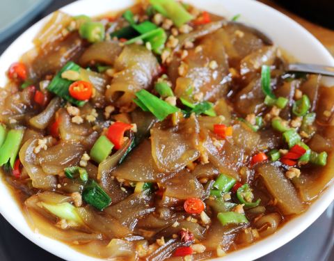 特色菜,选用干菜一起烤制,金黄酥脆,加上梅干菜的一点点咸和一点点椒麻,太好吃了固,也适合拿来当零嘴,一片一片比薯片更有嚼劲。