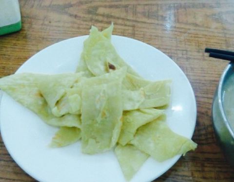 个人感觉饼有些凉了不够咸也没有那么劲道,可是和小菜辣椒酱配合起来吃,还是挺好吃的,拍照拍的碗不...
