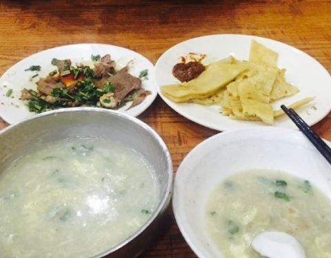 从西安下了车之后,油条去接的我们,我们早上在这边吃的早餐。这儿应该是山东正宗的早餐了吧。喝糁汤吃羊肉还有油饼,去年来过一次,济宁吃过再一次吃,觉得好亲切呀。它特别稠而且还有鸡蛋,满满的一大碗,根本喝不完好吗。而且如果觉得羊肉有点儿冷的话可以放到汤里面也是另外一种滋味。这里的油饼跟平常吃到油饼也是不一样的,要厚一些。味道还是不错的,早上喝完汤之后胃里暖暖的,很清爽。