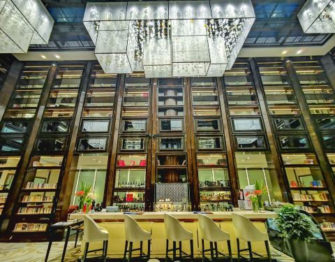 酒店配套的一个书屋,是一个看书喝咖啡下午茶的好地方,价格也不贵,有双人套餐,相对来说逼格比较高,所以人不是很多,风景很好,可以看南京城的风光,天气好的时候来。