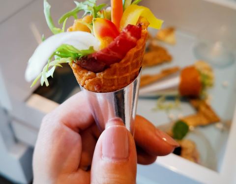 经典乳酪蛋糕 意式手指饼配巧克力慕斯 柠檬塔 黑鱼籽蟹肉小食 蜂蜜芥末胡椒牛肉脆筒 装饰的口红...