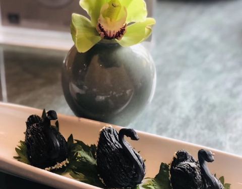 挑高空间沉稳典雅,窗外可赏池中天鹅