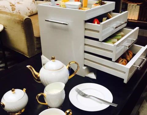 秋光浓重的慵懒午后 最适合享受一场下午茶了 悠悠的日子里 就是要一份自在和闲适 南京圣和府邸豪华精选酒店的下午茶,已然成为南京网红下午茶。主题隔段时间就会更新,9、10月限定仙履奇缘下午茶。 抽屉式下午茶套餐是它们家的特色,分为三层,每一层都有不一样的惊喜,水果、甜点、咸点都包含在内,关键颜值都很高,满足吃货对精致下午茶的所有幻想。 风味蜜桃巴洛特 白雪优格 红粉恋人 经典乳酪蛋糕 意式手指饼配巧克力慕斯 柠檬塔 黑鱼籽蟹肉小食 蜂蜜芥末胡椒牛肉脆筒 装饰的口红巧克力为覆盆子口味巧克力,可食用,可带走。 在这里享受惬意的下午茶,俯拾一本书,感受心灵之静,时光流转,阅读南京的过往,仿佛能够看到半部民国史。